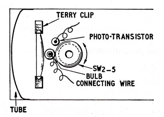 FIG. 3. The lens assembly, showing how the bulb and photo-transistor are fitted to an extension of the Transmit-Receive switch.