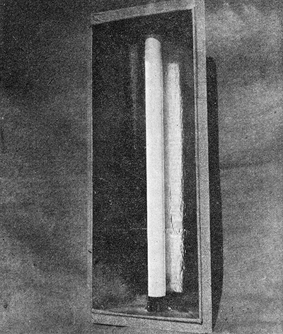 When viewed from a distance, the reflected image of the tube should fill the frame of the reflector. Wires soldered to the tube pins are taken out, top and bottom, to a suitable socket or connector.