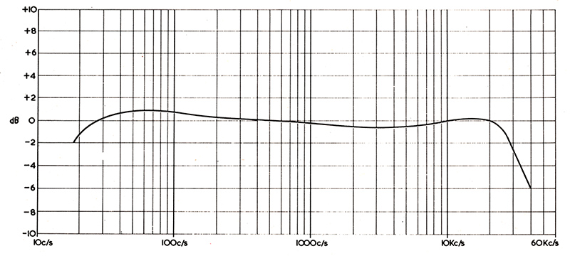 Fig. 7. A typical overall compensated response curve. This is within 2dB from 20 Hz to 25 kHz.