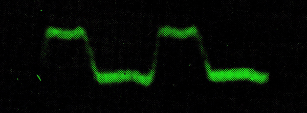The appearance of a 5 kHz square wave after passing through the entire Photophone transmit-receive system, including all the associated amplifiers.