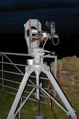 Northern Lights - A Further 6.7 km StepG3PHO G8AGN's Laser transmitter as used by G3PHOPeter, PHO, and I had a 1 way test over a 6.7 km path last night on the west side of Sheffield. The gear used was my Tx and Rx but now engineered properly (no duct tape!). The TX now has a G0MRF driver circuit and can accomodate a G4FRE CW ident keyer. No beam expander was used but might be incorporated later. TX Setup. Note the IC 202 SSB talkback and sturdy tripodThe Rx still uses the original G0MRF circuit (OPT210 with 2M resistor) but I may build a 0MRF Mk2 for comparison. The two ends of the path were on opposite sides of a valley and as it was dark when we set up, Peter (with the TX) set up the laser by sighting on my car headlights. Needless to say, I didn't need any aids to see the laser which was incredibly bright and even more impressive in appearance than when viewed during our previous 600m test. We are starting to appreciate the need for very fine pointing accuracy on the laser. Peter is now intending to build up his own system, so we hope to do some 2 way tests later in the year . Updated 17 Sept 2004 Return to Main Page |