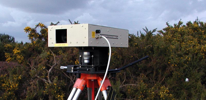 24th January 2004. G0FDZ's new laser transmitter on its first outing. A 10 mW HeNe laser, modulator and beam expander are housed in the strong aluminium box case.
